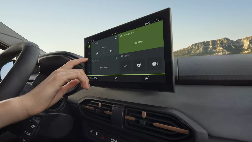 Interiér dostal nové poťahy, modrú textíliu na palubnej doske a vylepšený volant. Sandero aj Jogger majú nový multimediálny systém s 10" displejom, navigáciou a indukčnou nabíjačkou. Prístroje zobrazuje 7" digitálny panel s moderným rozhraním.
