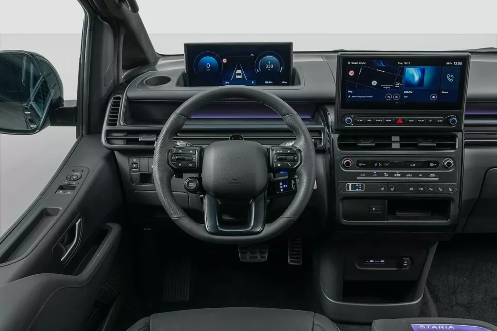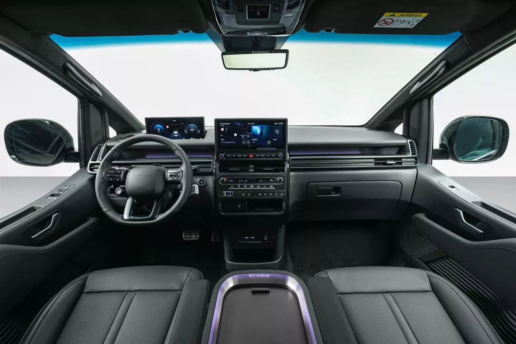 Staria Electric vychádza z filozofie „Inside-Out“, teda zvnútra von. Prioritou je kabína – a je to cítiť na prvý pohľad. Veľké presklené plochy, nízka bočná línia a rovná podlaha vytvárajú svetlý a vzdušný interiér. Variabilné usporiadanie sedadiel umožňuje prispôsobiť auto každodennému dochádzaniu, rodinným výletom aj profesionálnej preprave osôb.