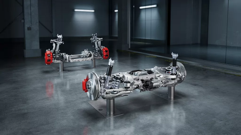 Podvozok AMG RIDE CONTROL s adaptívnym tlmením (Komfort, Šport, Šport+) a sériové riadenie zadnej nápravy zlepšujú agilitu aj stabilitu. Výkonná brzdová sústava AMG je dimenzovaná na športové tempo.