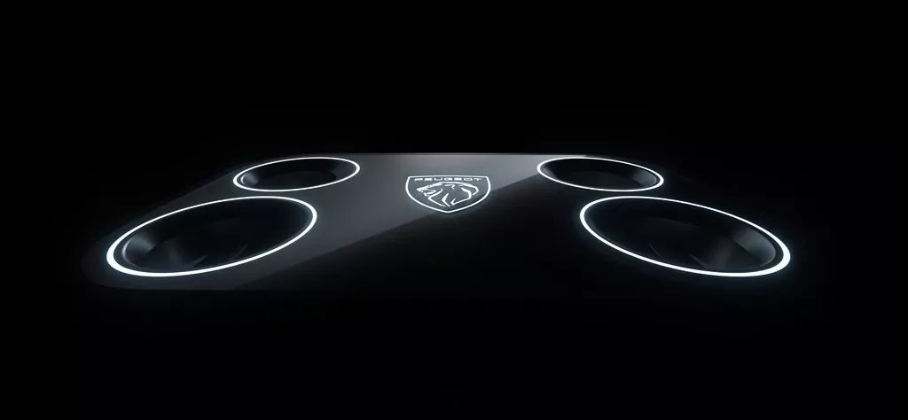 Na fotografii zaujmú predovšetkým kolesá s výraznými detailmi. Štvorica kruhových otvorov v dizajne diskov symbolicky odkazuje na nový volant Hypersquare, ktorý Peugeot predstavil v krátkom videu. Volant si zachová kompaktné rozmery, no prinesie úplne nový tvar a spolu s technológiou Steer-by-Wire zásadne mení spôsob riadenia.