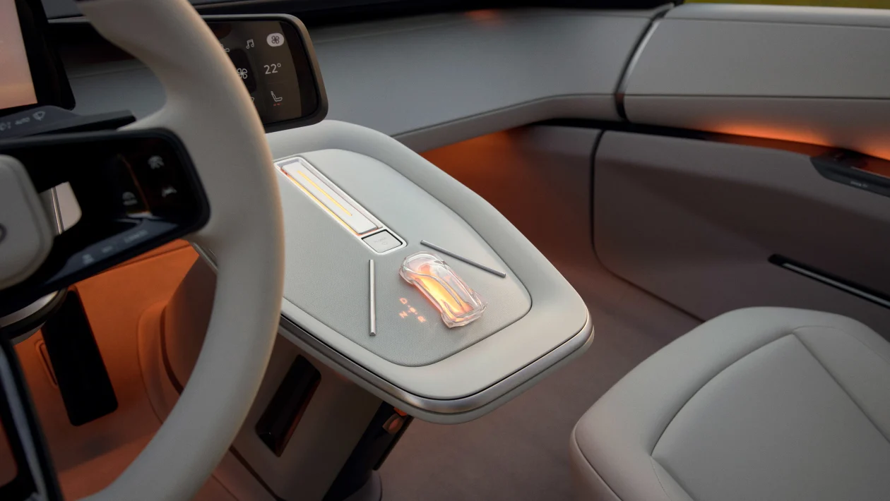 Kabína pôsobí minimalisticky – počet fyzických tlačidiel je výrazne obmedzený a väčšina funkcií sa ovláda dotykovo priamo z volantu. Celkový dojem podčiarkuje čistý dizajn a moderné materiály, ktoré reflektujú ekologický a technologický smer značky.
