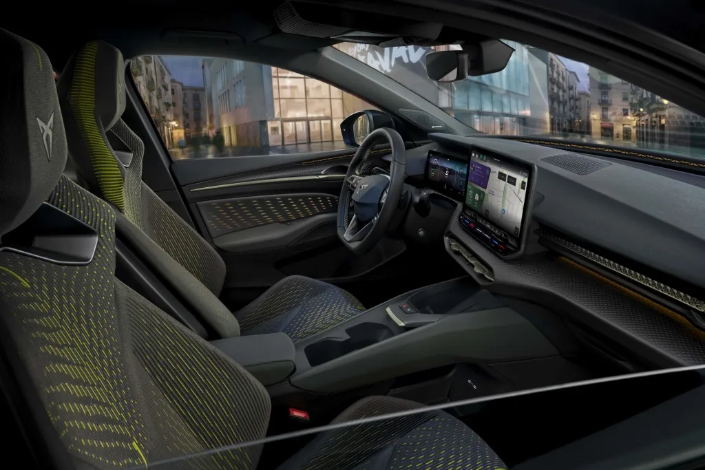 Nový volant s fyzickými tlačidlami a satelitnými ovládačmi pre jazdné režimy či rekuperáciu podčiarkuje športový charakter auta. CUPRA sa snažila vytvoriť auto, ktoré bude nielen praktické, ale aj zábavné.