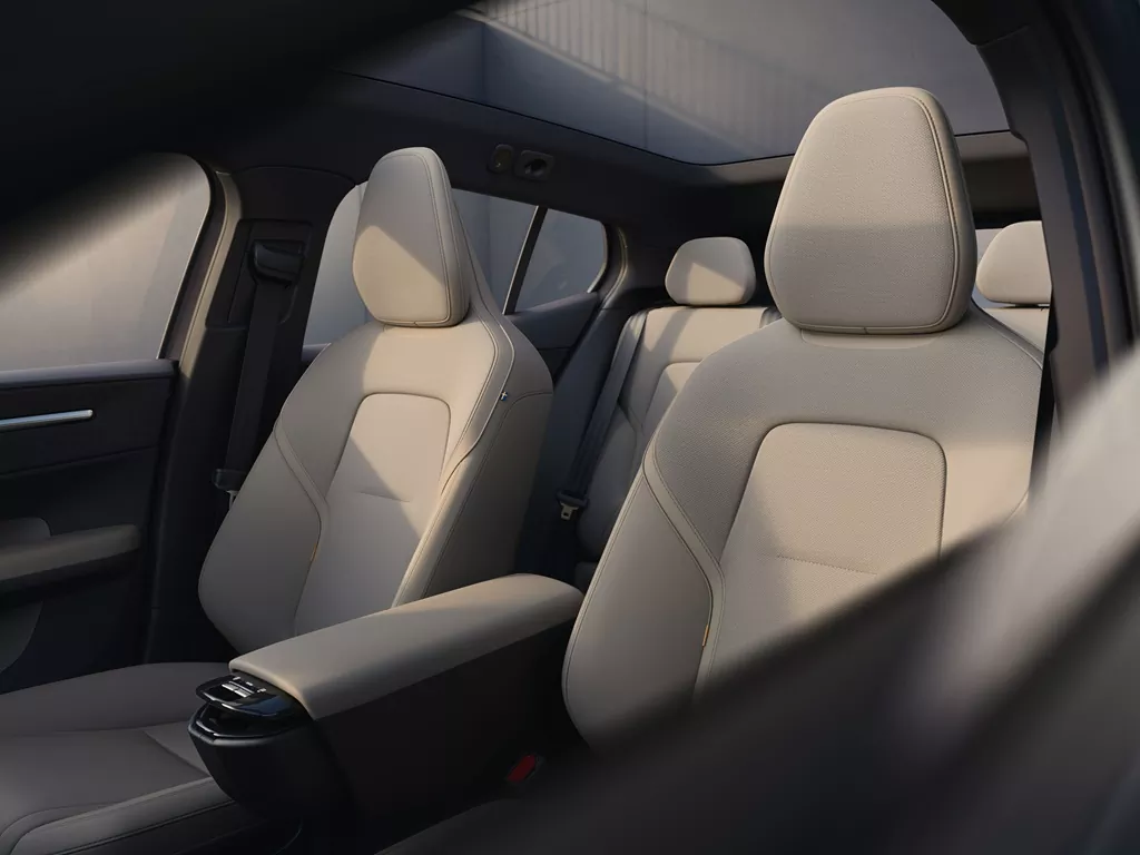 Volvo rozširuje aj ponuku interiérových vyhotovení. Novinkou je svetlejšie ladený interiér Harvest, inšpirovaný škandinávskym letom. Kombinuje tkané recyklované textílie so svetlým čalúnením Nordico a tmavými dekoračnými prvkami z ľanu.