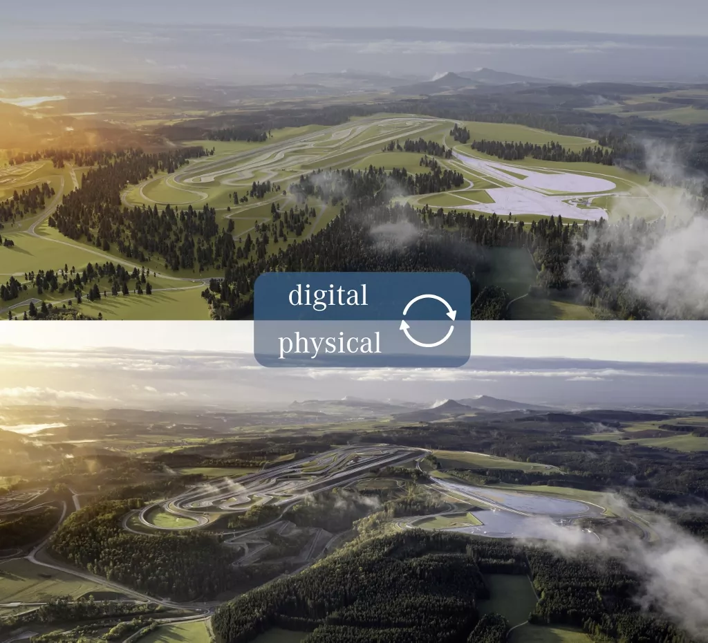 Celý areál má zároveň digitálne dvojča – každá trasa aj testovacie moduly sú dostupné pre virtuálne simulácie. Vďaka tomu možno preveriť stovky variantov nastavení ešte pred tým, než vozidlo vstúpi do reálnej skúšky.