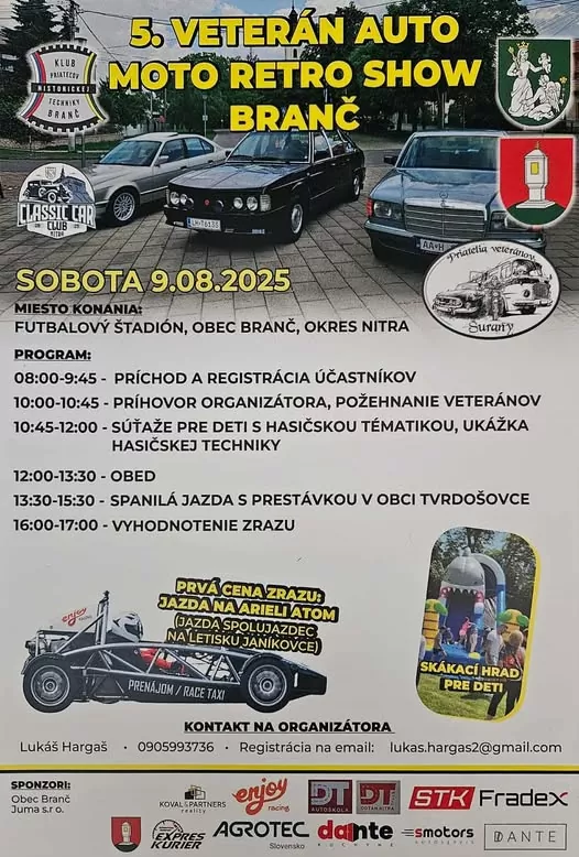 Máte radi vôňu benzínu, lesk poctivej chrómovej práce a zvuk starých motorov? Potom si v sobotu 9. augusta určite nenechajte ujsť Auto moto retro show Branč – tradičný zraz automobilových veteránov, ktorý sa koná neďaleko Nitry.
